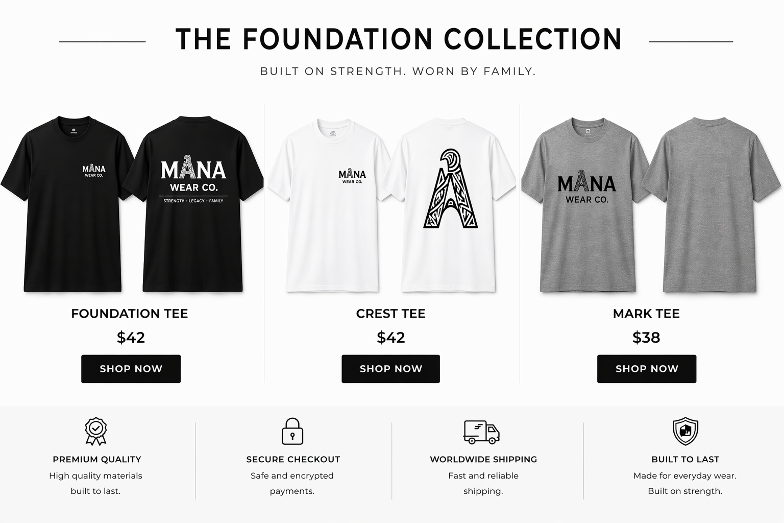 Mana Wear Co. was built on strength, legacy, and family.Premium essentials inspired by pride and worn with purpose.